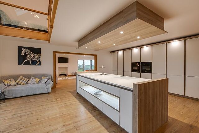 The modern interiors are filled with natural light, offering a high-end kitchen, dining area, and comfortable lounge.