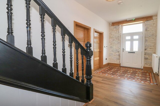The ground-floor also houses an elegant bathroom, complete with a freestanding bath, handheld shower, walk-in shower, heated towel rail, basin, and WC for your convenience. An external shower room with a walk-in shower, basin, and WC is also available, ensuring no morning queues.