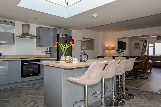After your journey to your new abode, you will find the generous open-plan living space which offers everything the chef of the group needs to whip up their home-cooked meals before gathering round the dining table and reminiscing about the day's activities. In the summer months, get your group outside and have yourselves a feast with the barbecue and wash it down with a glass of wine or an ice-cold beer.