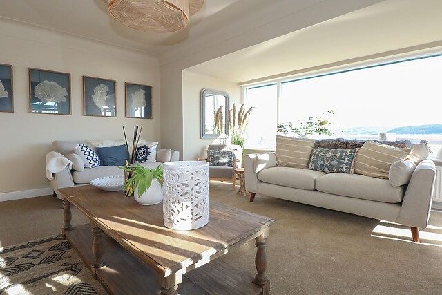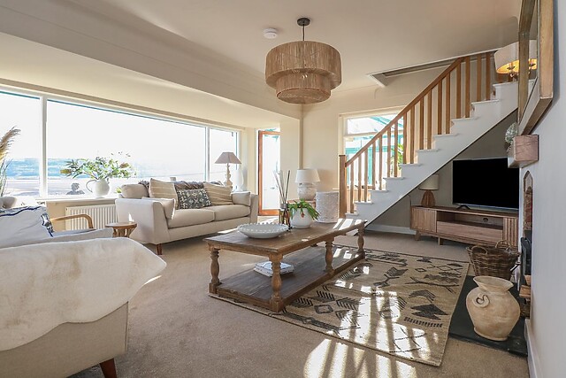 Stroll from the sea to your sitting room and rinse off the stray sand on your skin in a freestanding bath or ground-floor shower room, while the washing machine and tumble dryer in the external utility take care of the days' laundry. Satisfy your growing appetite in the kitchen/diner, equipped with electric range oven and hob, microwave, and fridge/freezer, before digging in at a spacious dining table for six, accompanied by window-framed, ocean views.