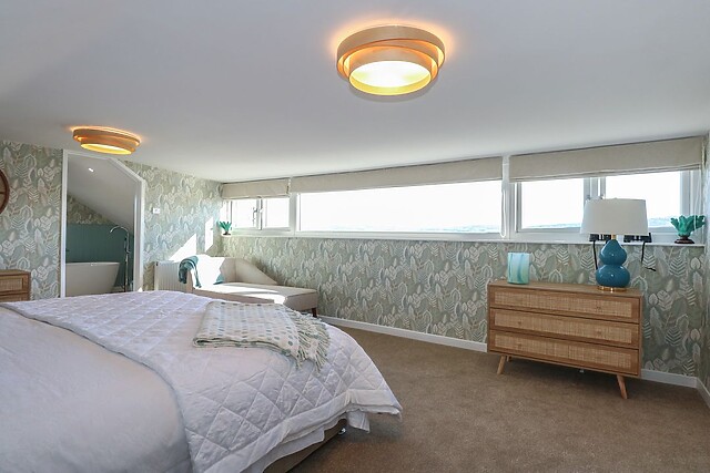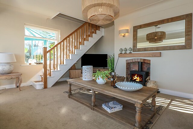 Toss your plates to the dishwasher before hopping in the hot tub for a warm, bubbling front-row seat to the sun sinking into the sea. Curl up in the sitting room, toasty by a woodburning stove, with an evening film on the Smart TV, before welcoming sleep in a ground-floor king-size, ground-floor twin, or super-king-size (zip/link) bed waiting to catch you.