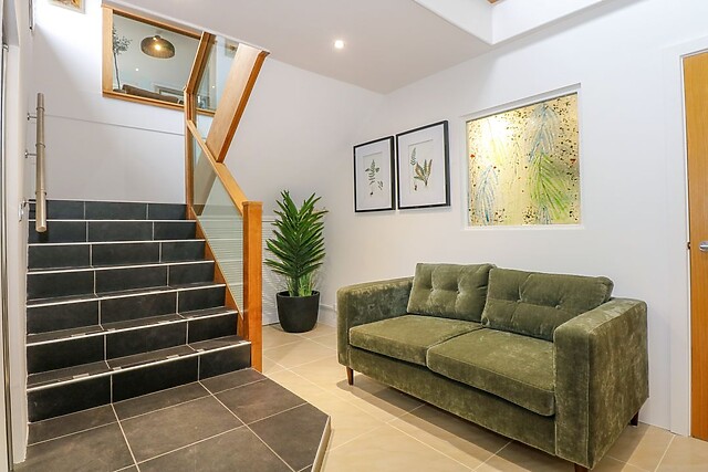 Additionally, there are two twin rooms with convenient Jack-and-Jill access to a shared shower room. Downstairs, you’ll also discover a fabulous games room, complete with an air hockey table, vibrant graffiti artwork, and a fridge/freezer that can be stocked with your favourite refreshments to enjoy while lounging on the sofa plus a convenient heated wet-room, perfect for taking a warm shower after enjoying the surf or rinsing off sandy paws.