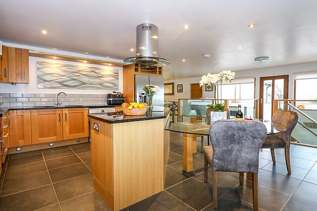 There is also a second games room with arcade machines and a sofa to relax on while watching shows or utilising the smart features of the TV. On the first floor, the open-plan living space features a homely, well-equipped kitchen with a hob, oven, air fryer, microwave, and dishwasher, along with a small dining area, perfect for kids to enjoy breakfast.