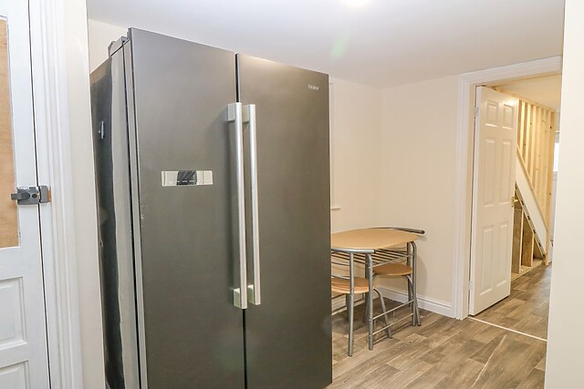 Climbing the stairs to the first floor, be charmed by the contemporary décor of the open-plan living space, home to a sumptuous seating area gathered in front of a Smart TV, enticing you to enjoy a moment of peace as you catch up on your favourite show. Discover the large well-equipped kitchen tucked away in the corner of the sociable space, fit with a range of convenient appliances to assist with your self-catering needs, including a handy dishwasher so there's no time wasted doing the washing up!