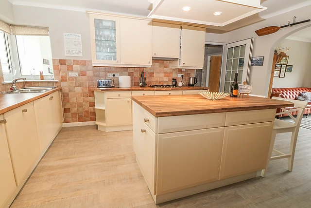 Close to Trearddur village, this delightful Anglesey cottage has a spacious kitchen/diner with a breakfast island, a bright and airy sitting room with a wall-mounted Smart TV, a cosy woodburner, and bi-fold doors taking you out to a decked terrace with uninterrupted sea views. There is also the bonus of a sun room at your cottage in Trearddur Bay, which boasts underfloor heating, a Smart TV and garden doors leading to a further seating area, where you can sit and relax in peace.