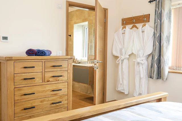 The accommodation features three tastefully decorated bedrooms, each with its own en-suite bathroom, ensuring privacy and comfort for all guests during their stay.