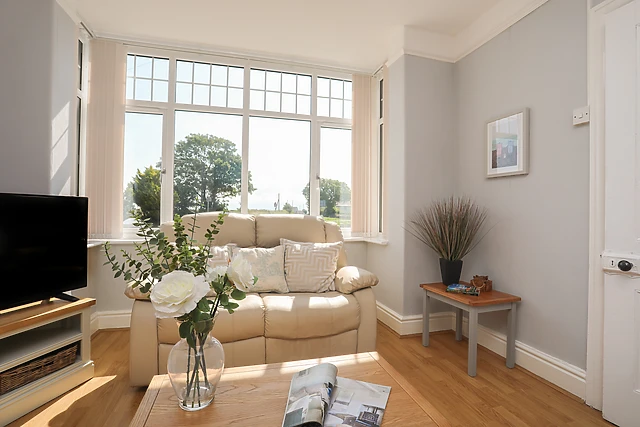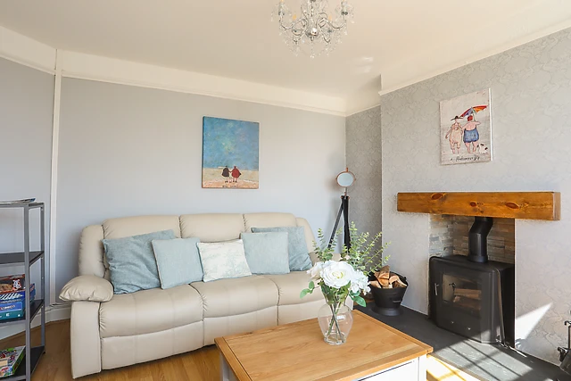 Step inside to find a cosy sitting room with a woodburning stove and Smart TV, ideal for relaxing evenings.
