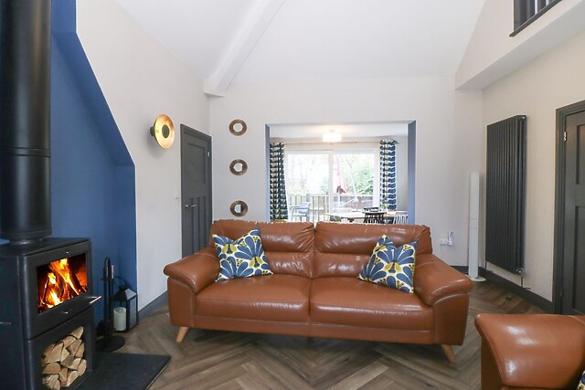 The living/dining room has high ceilings, a Smart TV and a woodburning stove ideal for winter evenings; the dining area seats up to four people and looks out onto the patio. The second bathroom features a huge freestanding bath to relax in your down time.