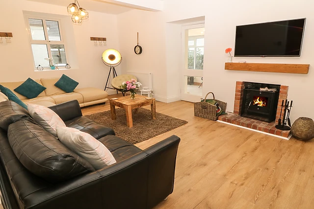 This extends into the spacious, modern lounge with a woodstove fire and plenty of seating. A Bluetooth stereo with unlimited access to spotify, a Smart TV with Netflix, Freeview and free access to a ‘Les Mills work out app’ for those that like to keep fit in the comfort of the cottage.