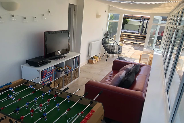 From the lounge, you can enjoy the conservatory which is fully stocked with fun and games for both adults and children with plentiful board games, toys, television, DVD and XBOX as well as a table football. On the second floor there are four large bedrooms, one enjoying a king-size bed, one double and 2 x twin bedrooms as well as a spacious and well-appointed family bathroom which has a bath as well as a separate walk-in shower.