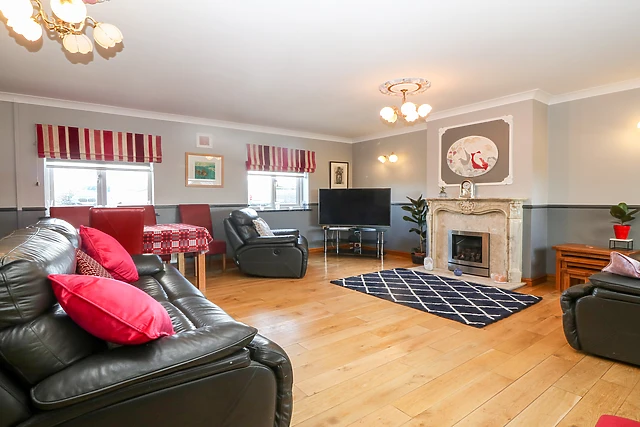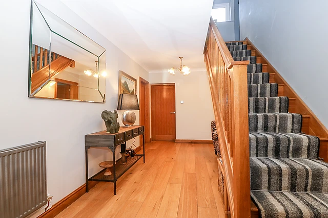 Continue into the kitchen/diner, offering a fully-equipped space to rustle up home cooked meals and dine as an eight, with a handy utility next door where you can store your walking gear and keep on top of your washing. The rear garden is a haven for alfresco dining, enjoying sweeping views of the countryside; be sure to spend sunny days outdoors before whiling the night away in the indulgent hot tub.