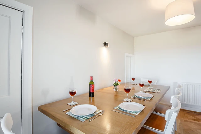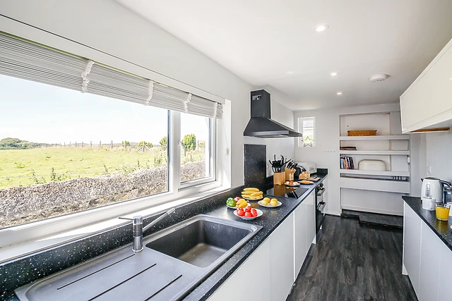 Grab your bags from the car and head up the stairs to the three bedrooms, all decorated in stylish metallic colours and crisp white, these rooms offer a restful stay for all of the family. Once you’ve unpacked, head down the stairs and into the kitchen to prepare an afternoon snack; following the elegant theme of the cottage, the kitchen makes a lovely area to prepare any meal you fancy when you’re not exploring the delicious restaurants of Anglesey.