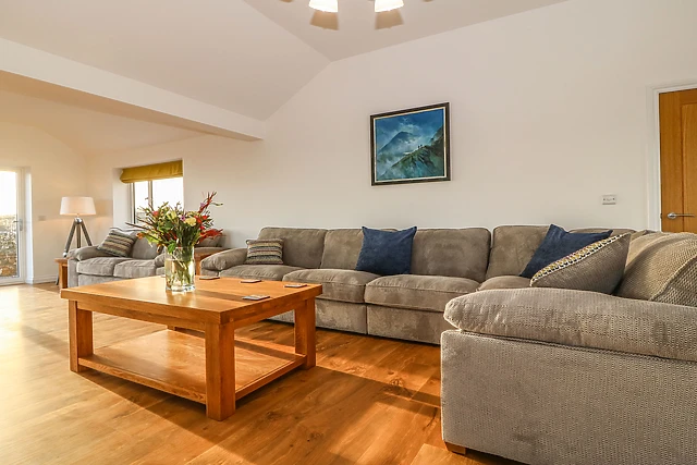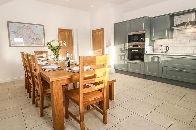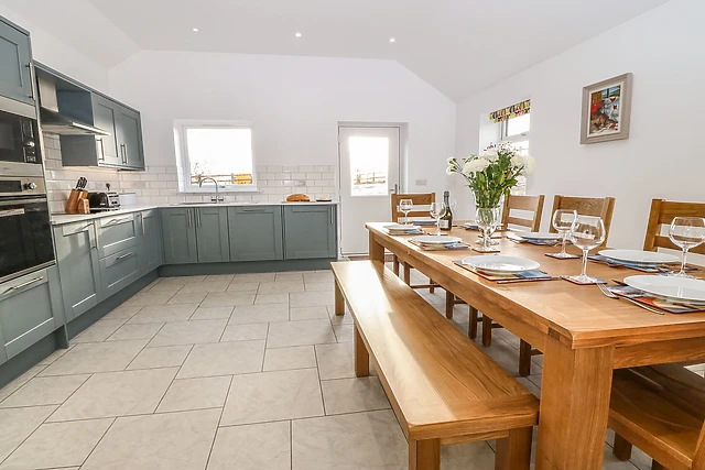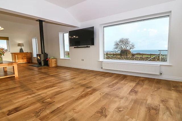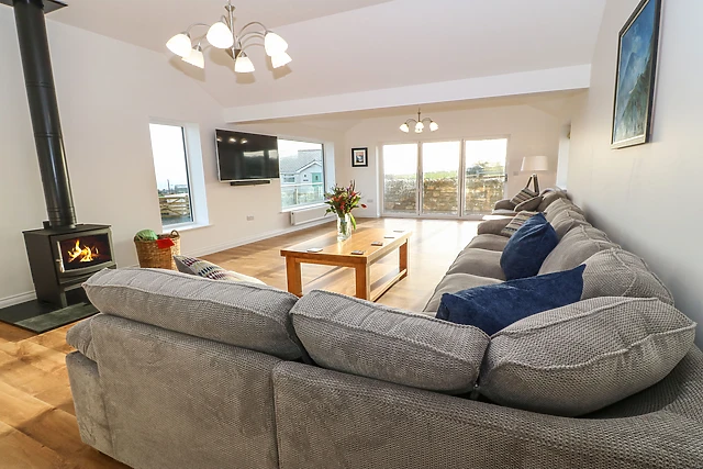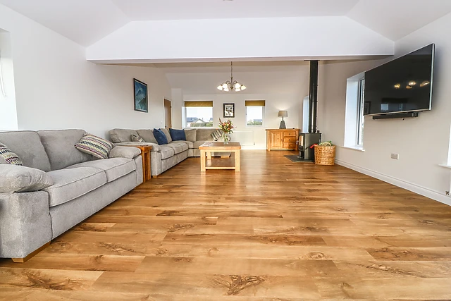 Indulge in the opulence of the cottage's interiors, featuring a modern kitchen/diner and a cosy sitting room with a woodburning stove. The 65" Smart TV is ideal for movie nights after a day of exploration.