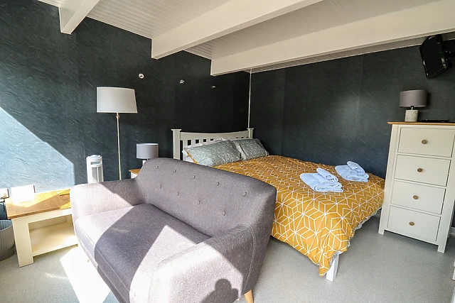Designed to accommodate two guests, the property features a comfortable double bed, a well-equipped kitchenette, and a sitting area, all combined to create a warm and inviting space.