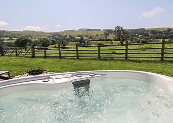 Step outside to enjoy the large garden, complete with a private hot tub, gas BBQ, and a bar. The patio and lawn areas offer plenty of seating options, perfect for soaking up the stunning countryside views.