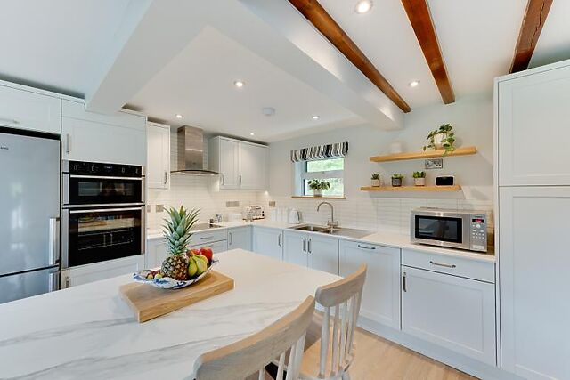 Inside, you'll find a cosy lounge with underfloor heating and a wood-burning stove, ensuring warmth during cooler months. The well-equipped kitchen and dining area are ideal for family meals, while the spacious bedrooms provide a restful night's sleep. The cottage features two bathrooms, adding convenience for all guests.