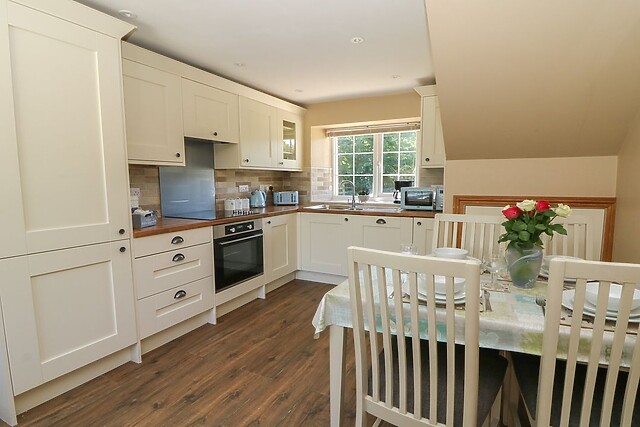 Sink into one of the two reclining armchairs or the reclining sofa and enjoy a show on the Freeview TV for some evening entertainment that everyone will want to be involved in The kitchen/diner is well-equipped for all your culinary needs, whether you're preparing a hearty breakfast to start the day or a delicious evening meal, as it boasts an electric oven and hob as well as a microwave. The dining area is perfect for enjoying meals together and discussing the day's adventures, which are followed by echoes of laughter as the holiday vibes flow.