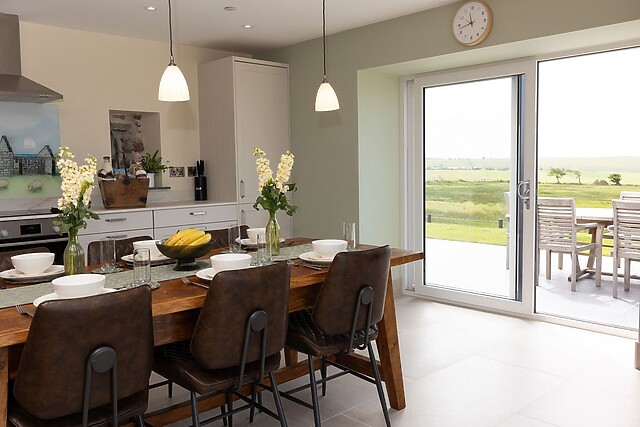 Upon entering the property, you will be greeted by a spacious open-plan living area, complete with a well-equipped kitchen boasting an electric oven and hob, fridge/freezer, and dishwasher. The dining area offers ample seating for all guests, providing the perfect setting for a family meal or a friendly gathering.