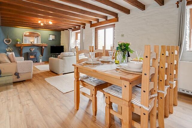 Step outside to discover a wonderful rear garden with a hot tub, hammock, garden sofas, and a chimenea. The large play area is perfect for children, while adults can relax in the landscaped grounds with ponds and woodland, located just 200 metres from the cottage.