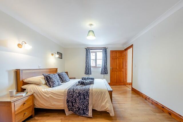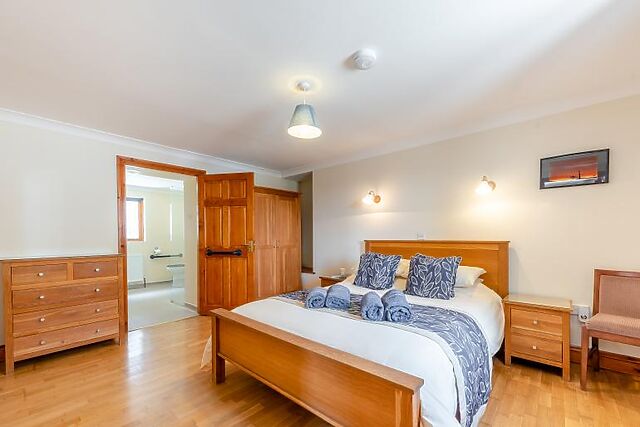 A ground floor bedroom with a king-sized bed and en-suite shower room ensures accessibility for all guests.