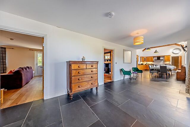 Inside, you'll find a smart and spacious open-plan kitchen/diner, ideal for gathering with loved ones. The well-appointed kitchen is perfect for preparing holiday feasts, while the adjoining utility room ensures easy access for all your laundry needs.