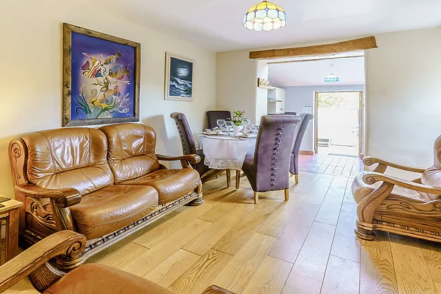 The property offers onsite fishing for sea trout, brown trout, and salmon when in season. A licence can be obtained from the post office, and a path leads through the owner's field to the riverside.