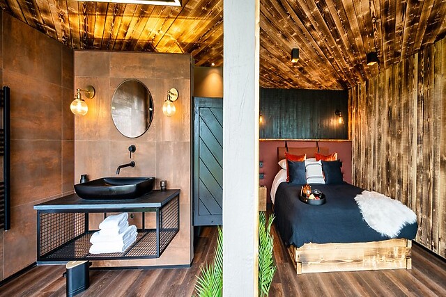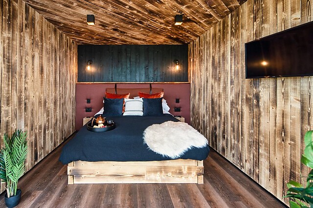 Escape to the Rusty Boathouse, a serene sanctuary nestled in the Welsh countryside, perfect for couples seeking a tranquil retreat. This single-storey pod comfortably sleeps two guests, offering a cosy king-size bedroom with a Smart TV and a luxurious hot tub for ultimate relaxation.