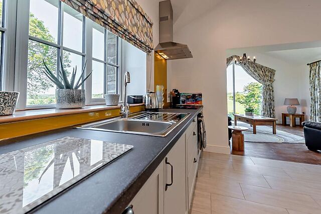 Head through to the open-plan lounge/kitchen/diner to be wowed by the far-reaching country views. Pull the glass doors open in here on fine days so you can step out on to the balcony.