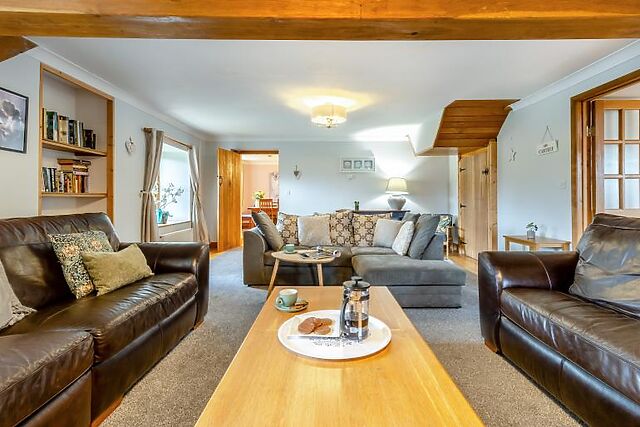 For outdoor fun you can dine on the covered deck, relax in the hot tub or explore the property’s 13 acres of grounds, which include a football/rugby pitch and a wildlife pond. This property offers parking for four cars.