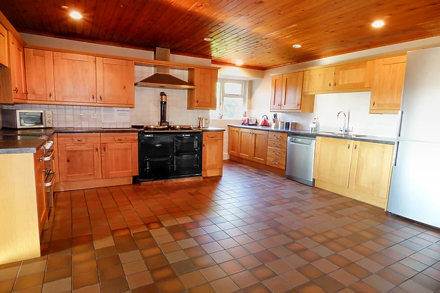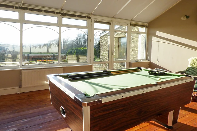 On the ground floor, there is a large kitchen which boasts an Aga where you can cook meals to enjoy in the dining room which benefits from spectacular views over the countryside and mountains in the distance. Then you have the choice of relaxing in a sitting room that features a smart TV, DVD and a woodburner or getting competitive in the games room that comes complete with a pool table and TV.