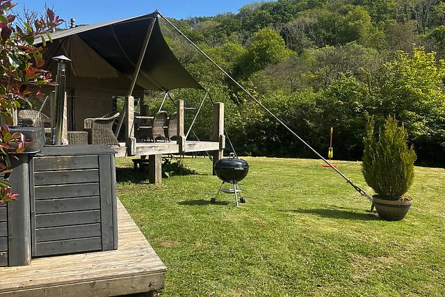 As you approach Ceri, the sense of adventure begins with its striking safari tent set within its own paddock, offering privacy and uninterrupted countryside views. The veranda greets you first, a perfect spot for morning coffee or an evening glass of wine, with the barbecue and hot tub promising indulgent alfresco moments under the stars.