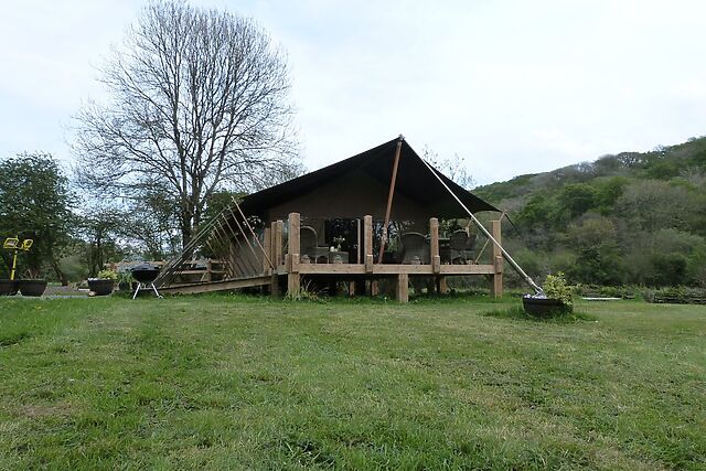 Ceri is a charming single-storey safari tent, resting near the town of Newcastle Emlyn in the picturesque county of Ceredigion. Perfect for families and friends, this inviting property combines contemporary convenience with countryside tranquillity, featuring an open-plan living space, a Nordic spa hot tub and woodburning oven.