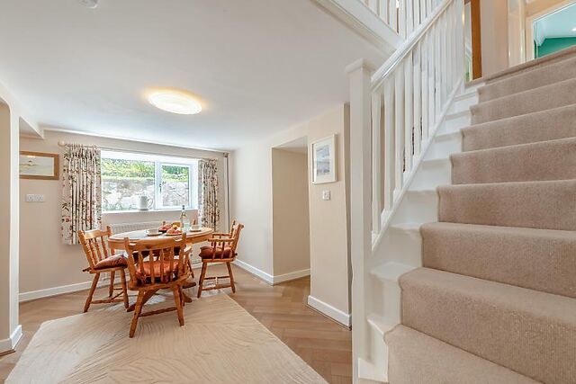 Step into this warm, welcoming property and find yourselves instantly drawn into the inviting lounge/diner, where neutral tones and soft lighting set a relaxing atmosphere from the get-go. After long beach adventures, unwind on the sofas, light the wood burner, and gather around the dining table for long, laughter-filled meals and games nights.