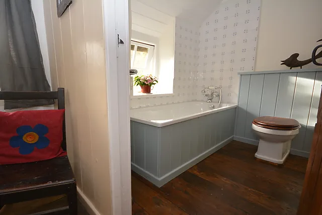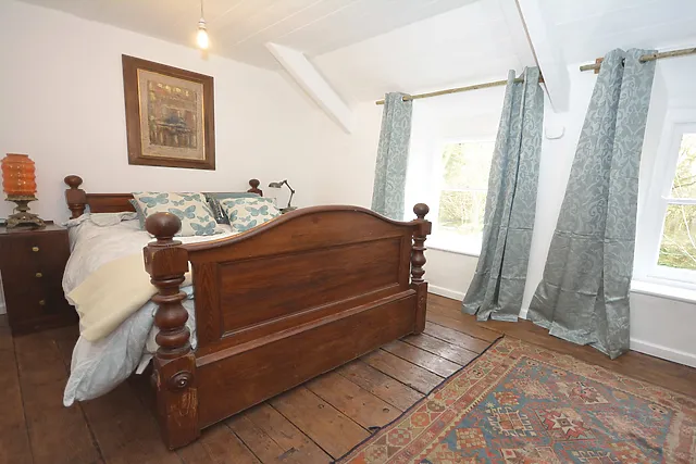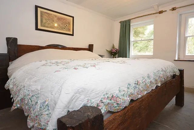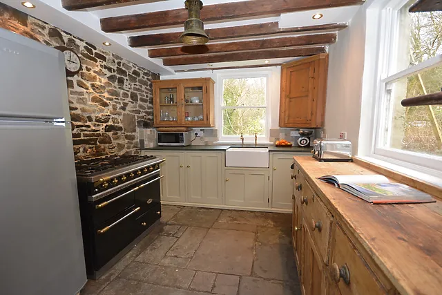 The cottage exudes rustic charm, with a wood burner to keep you cosy and a solid wood kitchen that looks out onto the garden.