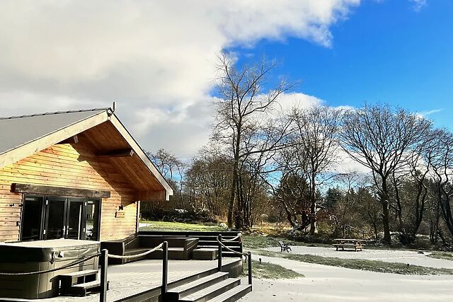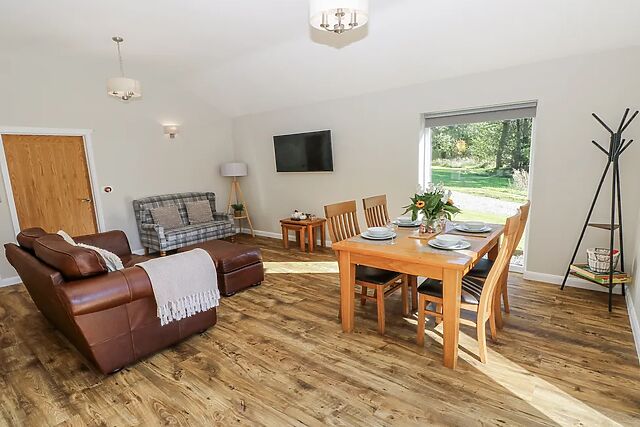 A sleek shower room with walk-in shower, basin and WC completes the interior, while LPG underfloor heating ensures the lodge stays warm and welcoming year-round. Step outside to a private decking area furnished for outdoor dining, along with a hot tub for evening soaks beneath the stars.