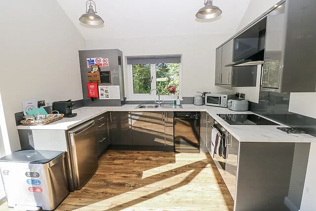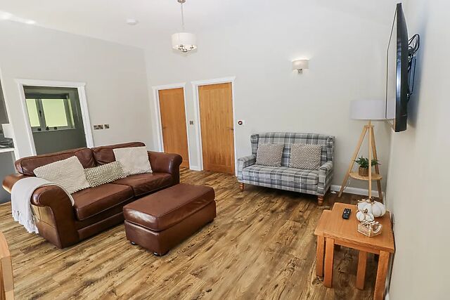 There’s space to relax after a day of exploring, a dining table for leisurely meals and plans for the days ahead, and a well-equipped kitchen with everything you’ll need—electric oven and hob, microwave, fridge with ice box, dishwasher, kettle, and toaster—making mealtimes straightforward. The accommodation is flexible, with two bedrooms to choose from: a king-size with its own TV and a twin with zip/link beds that can be arranged as a super-king if required.