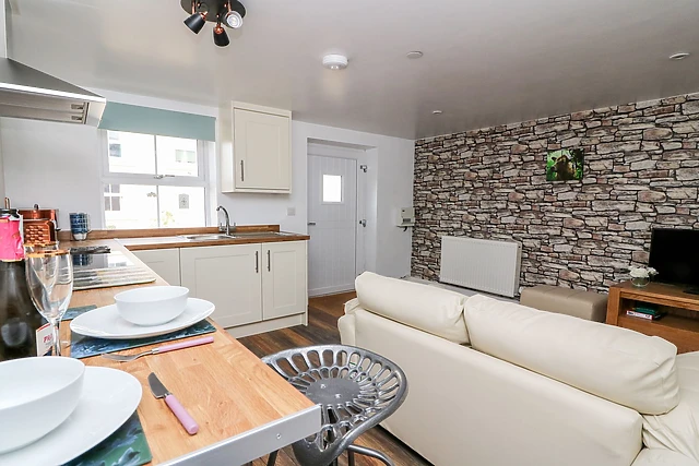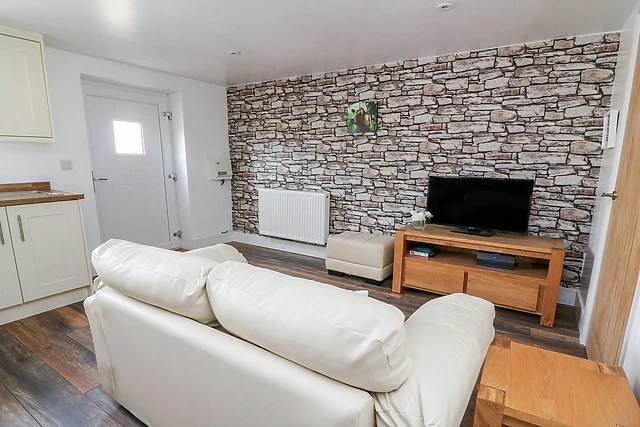 Stepping inside, be welcomed into an open-plan living space with a sofa to curl up and unwind into the evening whilst catching up with your favourite shows. The kitchen has been fitted to a high-standard with delightful cream units and sleek wooden worktops providing all the necessary appliances needed to cook up some delicious meals.