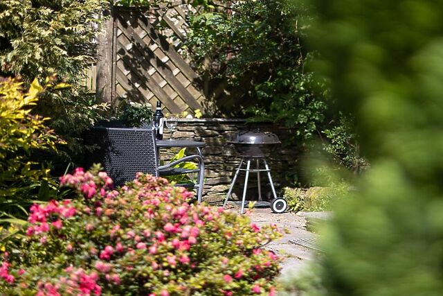 Outside, accessed via four steps from the kitchen/diner, is a private courtyard surrounded by pretty plants and shrubs. Relax here, looking out over the shared lawn, as you sip a glass of wine or fire up the BBQ for an al fresco supper.