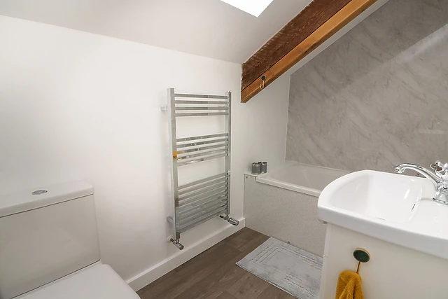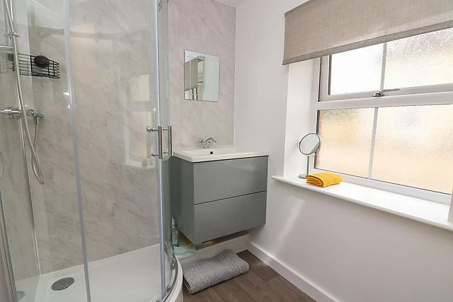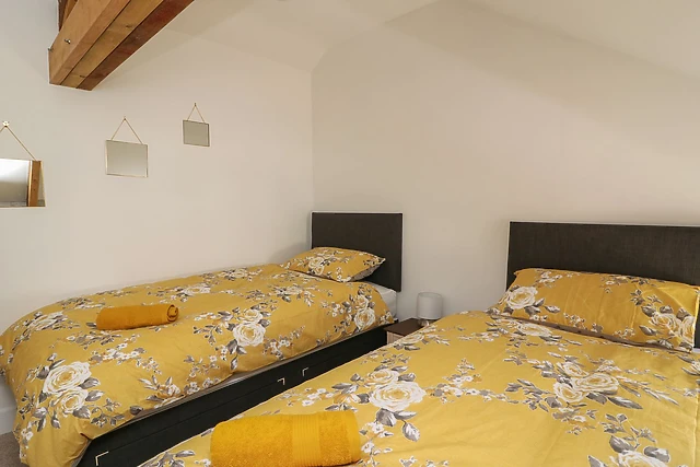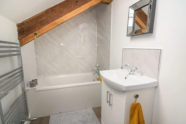 The property has two contemporary bathrooms to choose from; a ground-floor shower room and a first-floor family bathroom with bath and handheld shower, so there shouldn't be any queues in the mornings, while upstairs you will also find the two bedrooms, which include a master king-size with stunning original beams, a TV and Juliet balcony, overlooking the garden and surrounding countryside, as well as a cosy twin, which would be ideal for younger guests. Outside, you will find off-road parking for one car, as well as an enclosed patio garden with a picnic bench, so you can take full advantage of the good weather and dine alfresco, as well as a separate private hot tub area, sure to add a luxurious touch to your stay and the perfect way to round off the day.