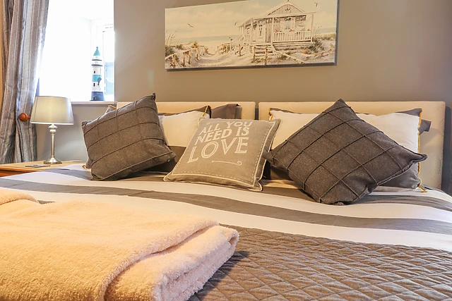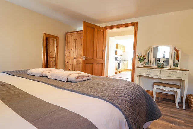 The ground-floor bedroom features a super-king-size bed, ensuring a restful night's sleep.