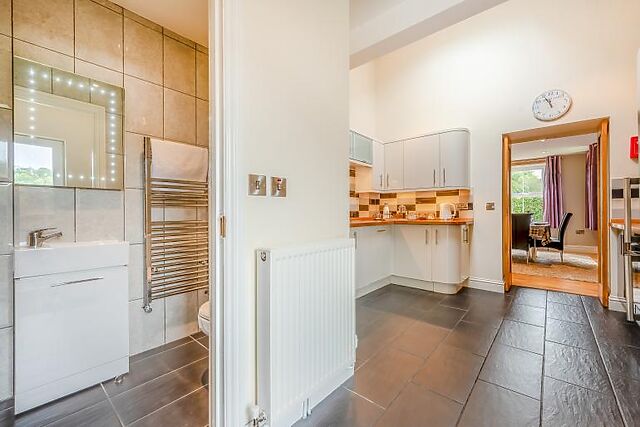 A single bed is also available in this room. A fully-tiled family bathroom completes the upstairs layout.