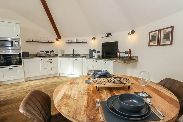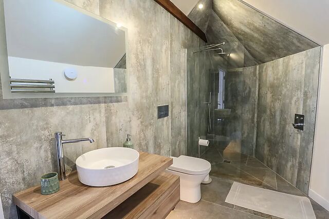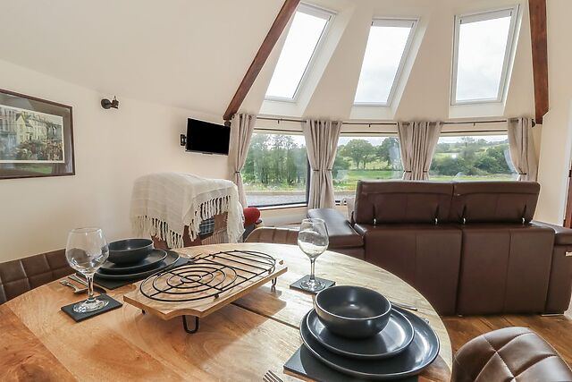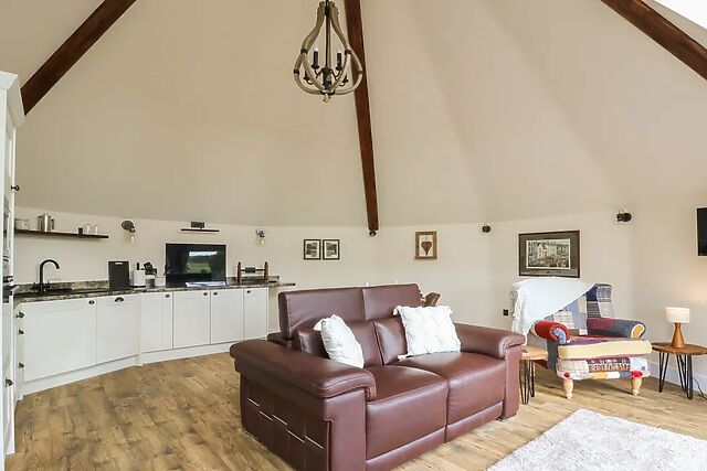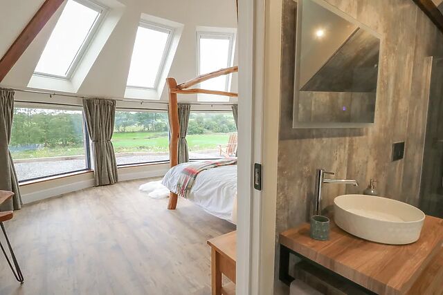 After plates are clear head to the sitting area, flick on the TV or simply admire the breath-taking view from the sofa and armchair overlooking the countryside. As the stars begin to twinkle from the skylight, head to the stylish and contemporary shower room, tucked neatly behind the bedroom, with a large walk-in shower to help you unwind for the evening, as the heated towel rail warms a fresh pair of clothes.