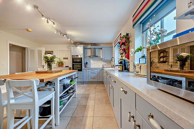 There are two additional double bedrooms and a twin room accessed through a loft area, which can also serve as a playroom. A charming family bathroom completes the first floor.