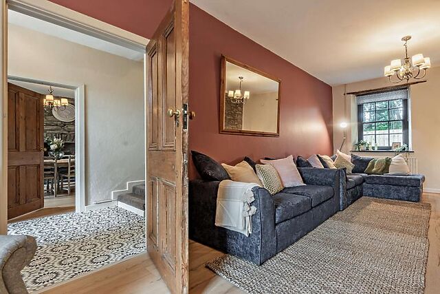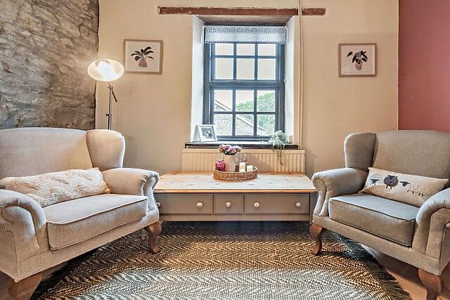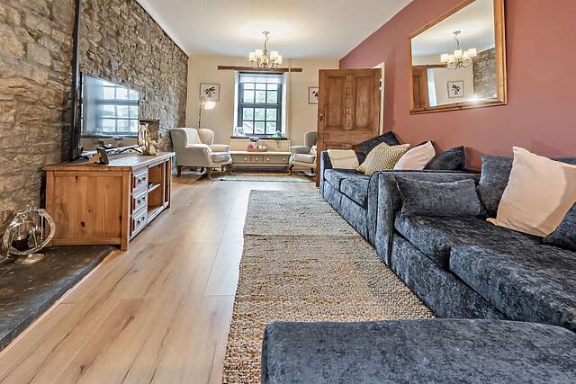 This handsome stone cottage is semi-detached and surrounded by endless fields, ensuring a sense of serenity that’s a pleasure to wake up to every morning. There’s so much space for unwinding together as a group, including the inviting lounge with soft sofas and a Smart TV.