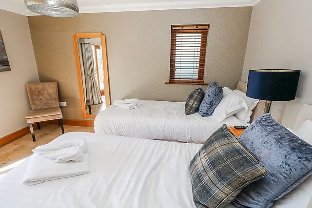 Designed to make the most of its setting, the layout places the sleeping accommodation on the ground floor, creating calm, private spaces to retreat to at the end of the day. There is a king-size and a super-king-size (zip/link) bedroom, each beautifully finished and benefitting from their own en-suite bathroom, complete with a bath, shower over, basin and WC.