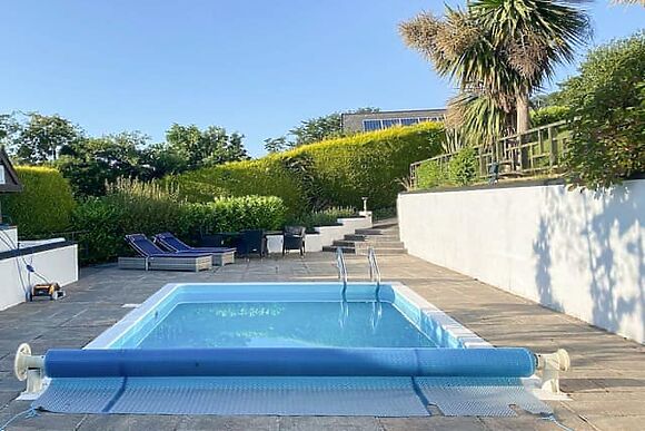 Mor O Gariad sleeps 8 in New Quay, Ceredigion. Rated 4.8/5 with Customers' Choice awards. Private hot tub, heated outdoor pool (May - Sep), games room, sea views and parking for 4 cars. New Quay harbour and dolphin boat trips are 1.5 miles away.