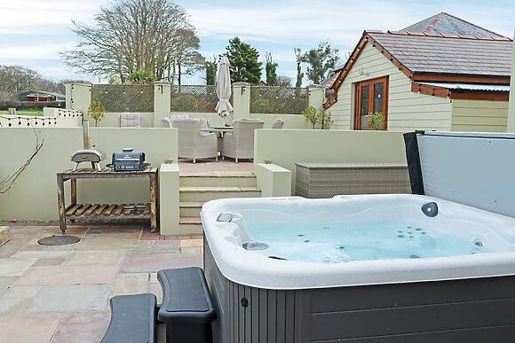 Barn conversion with elevated garden and superb hot tub near Newcastle Emlyn. Open plan living area, enclosed patio garden, fantastic base. Newcastle Emlyn 3.5 miles.