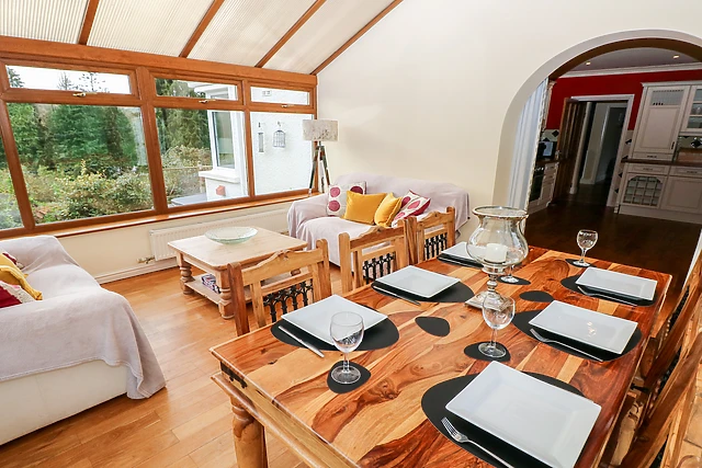 The conservatory/dining room is perfect for hosting in, while the sitting room is a great place for winding down after a long day of exploring. If the weather permits, stroll outside to soak up the last of the sun in the private garden while your pooches play; take a dip in the hot tub or dine alfresco on the balcony or at the picnic table in the garden, sipping a cold tipple as you reflect on your favourite memories so far.
