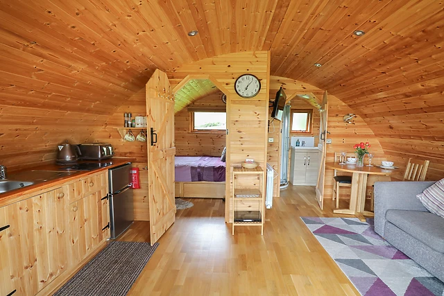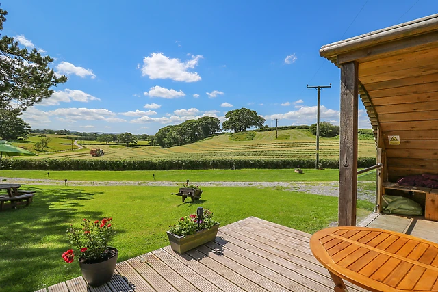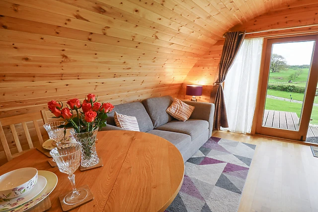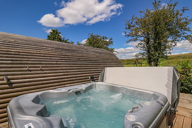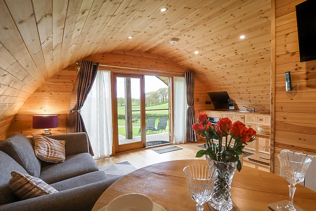 After unloading your belongings, take the weight off your feet in the sitting area as your other half makes you a cup of tea; the well-equipped kitchenette is stocked with all the necessary appliances required to ease your self-catered stay whilst the dining spot provides the perfect spot to enjoy a romantic meal. If you prefer to dine alfresco, step out onto your very own private decking area where you can admire striking views of the rolling countryside prior to taking a dip in the bubbling hot tub, stargazing into the night across the dark sky nature reserve.