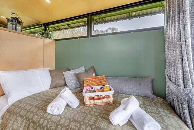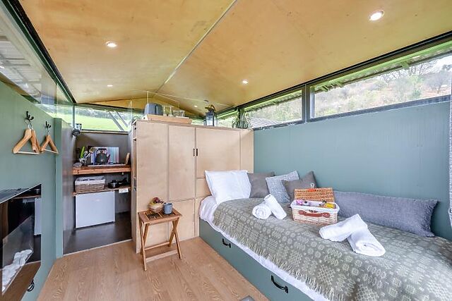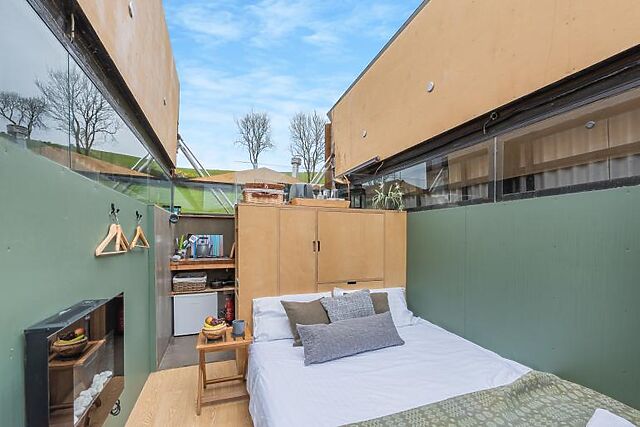 One of the standout features of Sky Hut is its innovative design. The roof can be fully opened, allowing you to stargaze from the comfort of your bed. The cabin is set on a working farm in a Dark Sky zone, providing clear, unpolluted views of the night sky.